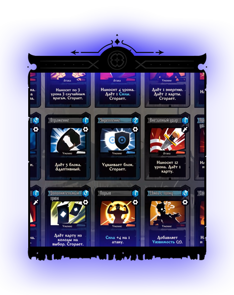 Собирайте деки из сотни доступных карт и разносите любых врагов вдребезги.